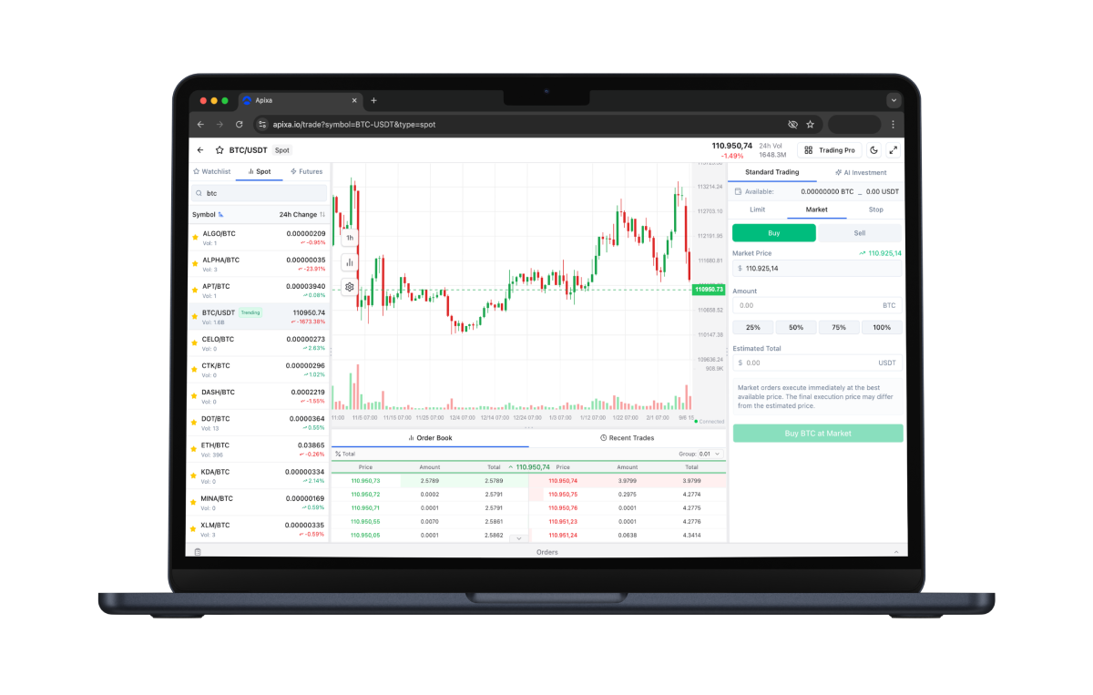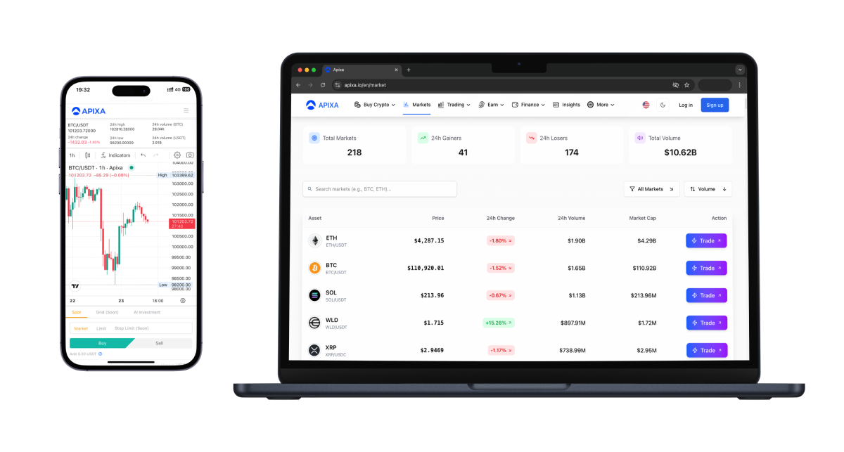 Apixa cung cấp các dịch vụ giao dịch và đầu tư phong phú, hỗ trợ người dùng tối ưu hóa lợi nhuận trong thị trường tiền mã hóa đầy biến động.